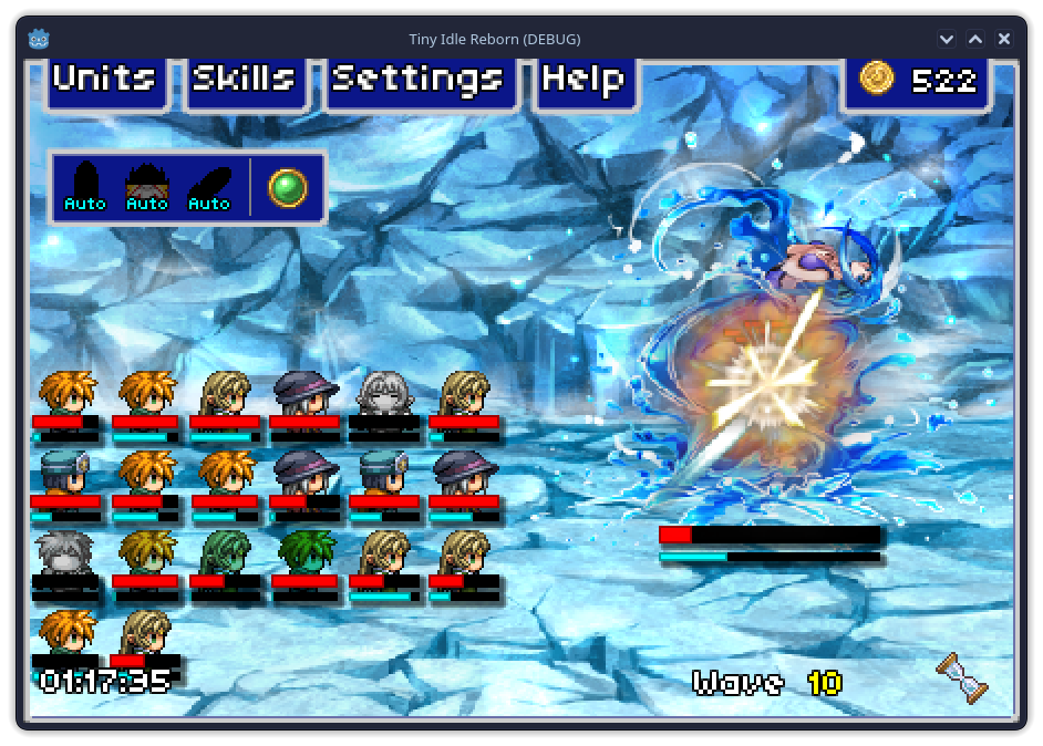 This is a project with a battle system inspired by Final Fantasy All The Bravest. I made this purely for fun and just to try a different type of idle game. I learned a lot from it! That being said, it lacks a lot of polish and likely won't be seeing any updates outside of any game-breaking bug fixes. Here's a few details about the game: