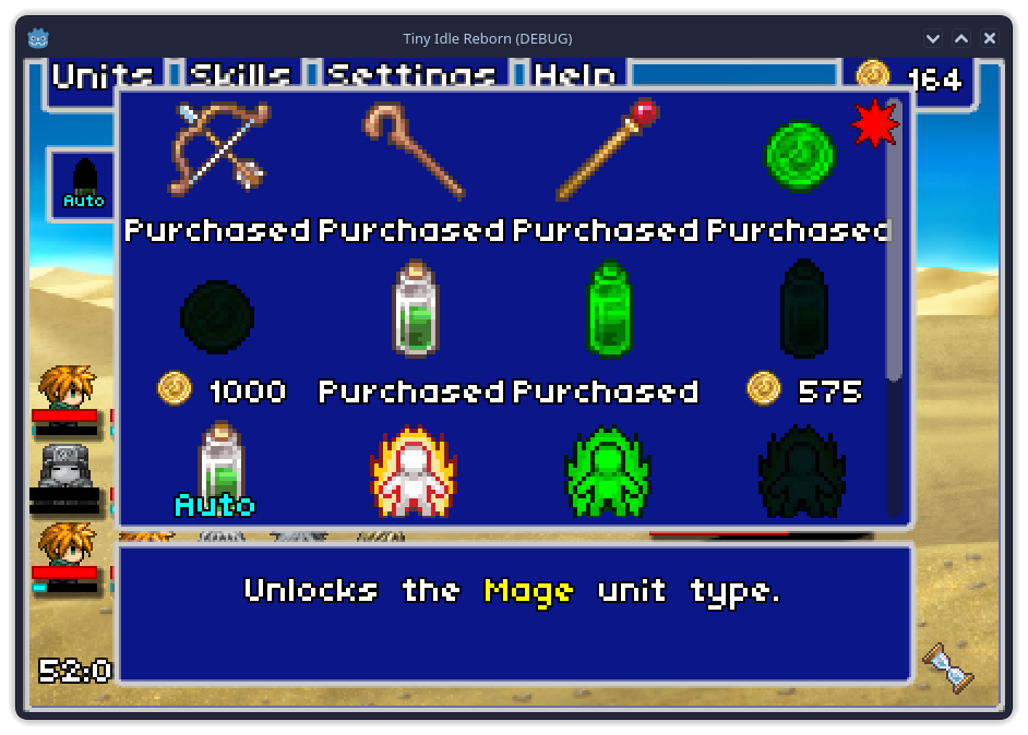 - The game is playable in the webpage but I'll provide a standalone version for both Linux and Windows as the game was intended to be a small dockable game that you can play in an idle-like manner while you do other things.